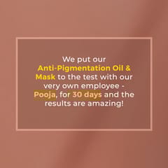 Take the required amount of Pigmentation Oil and massage all over the face, neck, and body focusing on targeted areas.