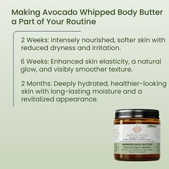 Indulge in the luxurious sensation of our Avocado Whipped Body Butter — a sumptuous treat for your skin that promises to transform your daily routine into a rejuvenating spa experience. Brimming with the rich nourishment of avocado and pure, natural butters, this exquisite formula works wonders on dry, flaky, and weathered skin. Bathe your body in a hydrating embrace that quenches, protects, and pampers, unveiling a complexion as smooth as silk and luminous as morning dew.
