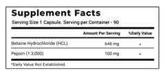 Helps Prevent and Manage SIBO (Small Intestinal Bacterial Overgrowth): By increasing stomach acid levels, Betaine HCl helps prevent the migration of bacteria from the large intestine to the small intestine, a key factor in the development of SIBO. A properly acidic environment in the stomach also acts as a barrier against the overgrowth of bacteria that can lead to digestive discomfort.