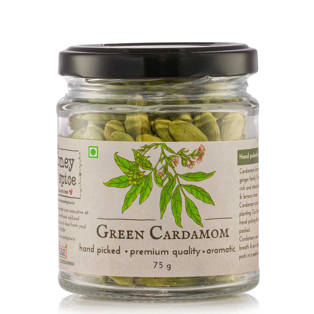 Hand picked and sorted from the cardamom hills of Kerala. Cardamom, known as the queen of spices in India belongs to the ginger family. One of the world s very ancient spices, known for its rich and intoxicating aroma and complex flavours. It has warm minty & lemony tones.
