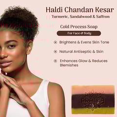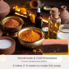 Unlock the secret to luminous skin with our Haldi-Chandan-Kesar Cold Process Handmade Bathing Bar – a sublime fusion of timeless heritage and luxurious skincare. Enveloped within its golden embrace is the exquisite harmony of Turmeric, Sandalwood, and Saffron, renowned for their transformative properties. This Radiant Glow Bar is meticulously handcrafted to pamper your skin, infusing it with a serene glow and breathtaking vitality.