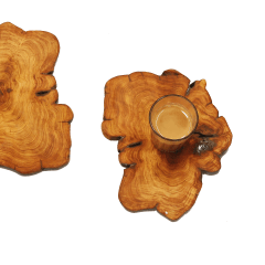 We used the wood that has been fallen down because of natural calamities or has beautifully aged over the time. The wood here is from the juniper berry tree ( the berries from which gin is made) that naturally smells of camphor and is a natural disinfectant, which is what makes these coasters one of the most exotic and beautiful!
