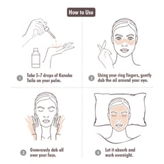 2. For Dark Circles - a)Take a 5-7 drop drops of Kanaka Oil on your palm and, using your ring fingers, gently dab the oil around your eye. Use every night and allow the serum to work while you�re asleep. Eye massage can also help with under-eye drainage, reducing puffiness.