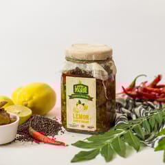 Ever craved for a lemon pickle which was both sour and spicy? Well, we bring you the action packed combination of the sourness of a lemon accompanied by the spices from the south. All the sugar that goes into the products is not white sugar, but desi khaand prepared in the farm itself