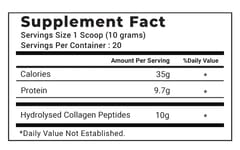 VitaOne's Collagen Peptides Powder is derived from Marine sources.Each serving contains 10g of collagen powder, conveniently measured with the provided scoop. Our collagen is highly bioavailable, easily digestible, and soluble in water. With no taste or smell, it seamlessly blends into your favorite beverages like coffee, juices, or green tea, maintaining their original flavor and texture. Incorporating our collagen into your daily routine can help minimize wrinkles, enhance skin's radiance, strengthen hair and nails, support bone health, and promote digestive wellness.