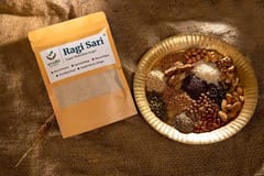 Our meticulous preparation—soaking, sprouting, shade drying, roasting, and sieving—creates a nutrient-rich mix of sprouted grains, dry fruits, and seeds. Packed with protein, omega-3s, and essential nutrients, Vrudhi Ragi sari is ideal for babies, fitness enthusiasts, and elders, offering genuine nourishment with pure, real ingredients.