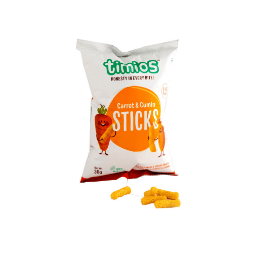 Timios Carrot and Cumin Sticks are made from 100% natural and non-fried whole grains loaded with the goodness of natural vegetable extracts making it a healthy as well as a nutritious snack for your little one. Timios Snacks come in a different combination of flavours and shapes for you to choose from and for your little one to relish. This product does not contain any artificial colours, flavours and preservatives.