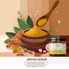 Discover the timeless touch of ancient beauty rituals with our Ubtan Natural Scrub, a soap-free face scrub delicately crafted to revitalize your skin. Encased in a 60 gms package of pure indulgence, this scrub draws on centuries-old Ayurvedic wisdom to provide an opulent experience that transcends mere skincare. Invigorate your senses as this luxurious exfoliant unveils your skin’s natural luminosity by gently sweeping away dead skin cells, revealing a silky, smooth texture beneath.
