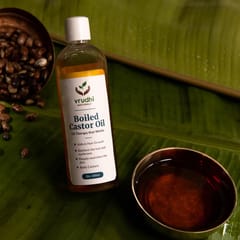 Vrudhi boiled castor oil solves this. Castor seeds are boiled in water, allowing the ricin to break down and separate from the oil. The result? Pure, safe, toxin-free oil, rich in ricinoleic acid, the very compound that gives castor oil its healing power. No cold-pressed brand can match this level of purity. This isn’t just castor oil. This is boiled castor oil, made the way Ayurveda intended, safe enough to consume, and gentle enough for daily wellness.